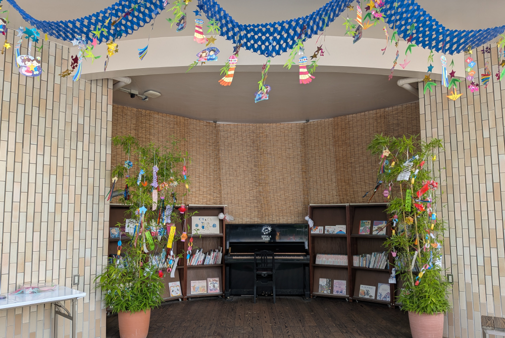期間中、屋上のステージに七夕の笹を設置し、ご自由に願い事を書いていただきました。